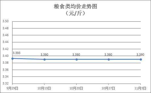 粮食类商品价格稳定。所监测的4种粮食类商品价格均持平,零售均价为每斤3.390元。其中:丝苗米、富强粉零售均价分别为每斤3.57元、3.36元,环比均持平。