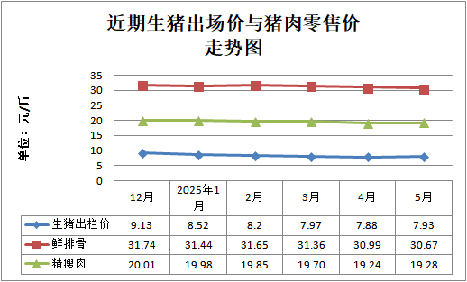 我市生猪、仔猪出场价出栏均价分别为每公斤15.85元、37.20元,环比分别上涨0.57%、上涨3.91%,同比分别下降5.09%、下降20.85%;鲜排骨、精瘦肉、牛肉、带骨羊肉零售均价分别为每斤30.67元、19.28元、46.31元、41.81元,环比分别下降1.03%、上涨0.21%、上涨0.39%、下降0.65%,同比分别上涨4.21%、上涨5.18%、下降4.42%、下降2.45%;饲料类价格,玉米、豆粕、麦皮购进均价分别为每公斤2.52元、3.60元、2.19元,环比分别下降0.40%、上涨1.41%、上涨1.39%,同比分别下降1.56%、上涨1.69%、上涨19.67%。