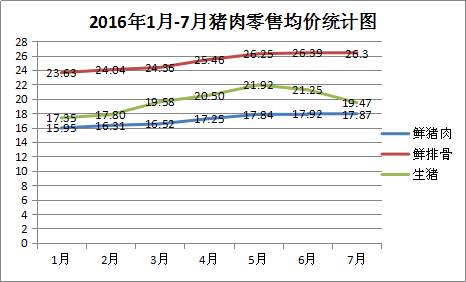 本月最高气温不断刷新,受人们食欲清淡影响,我市猪肉市场需求有所减少,加上近期生猪出栏数量增多,本月生猪出栏价小幅回落,据监测,生猪、仔猪出栏价分别为19.47、64.78元/公斤,较6月分别下降8.38%、3.31%,较去年同期分别上升7.87%、45.57%。终端市场价格稳中趋降,精瘦肉、鲜排骨零售均价为17.87、26.30元/500g,环比分别下降0.28%、0.34%,同比分别上升17.80%、20.37%。