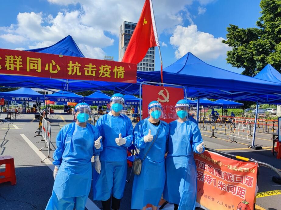 ▲固废公司党员、团员青年支援结对社区开展核酸检测工作