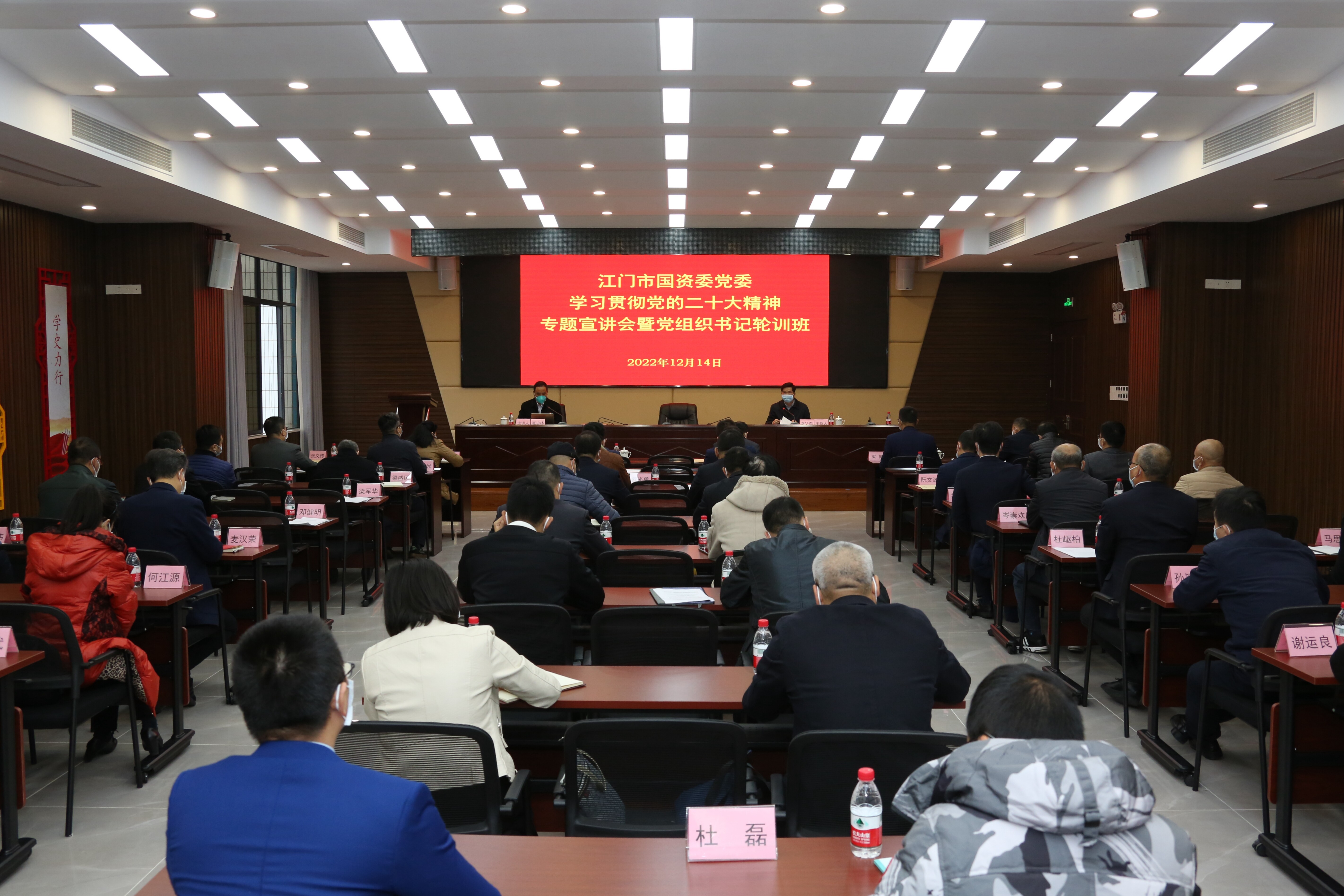 为深入学习宣传贯彻党的二十大精神,自觉把学习成效转化为推动工作的强大动力,积极构建好支撑江门市属国企未来高质量发展的“四梁八柱”,市国资党委12月中旬举办为期三天的学习贯彻党的二十大精神宣讲会暨党组织书记轮训班。市国资委领导干部及委机关党员干部,市管企业班子成员,各级党组织书记、党办主任、党务和业务骨干等60多人参加了轮训。