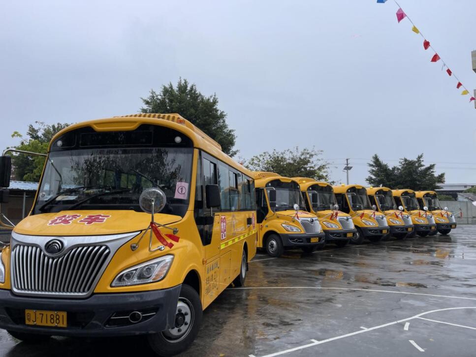 启动仪式上,江门文旅交通集团购置的亮黄色宇通校车依次从开平市长沙实验学校徐徐驶出,标志着开平市农村小学学生正式迈进“校车时代”。
