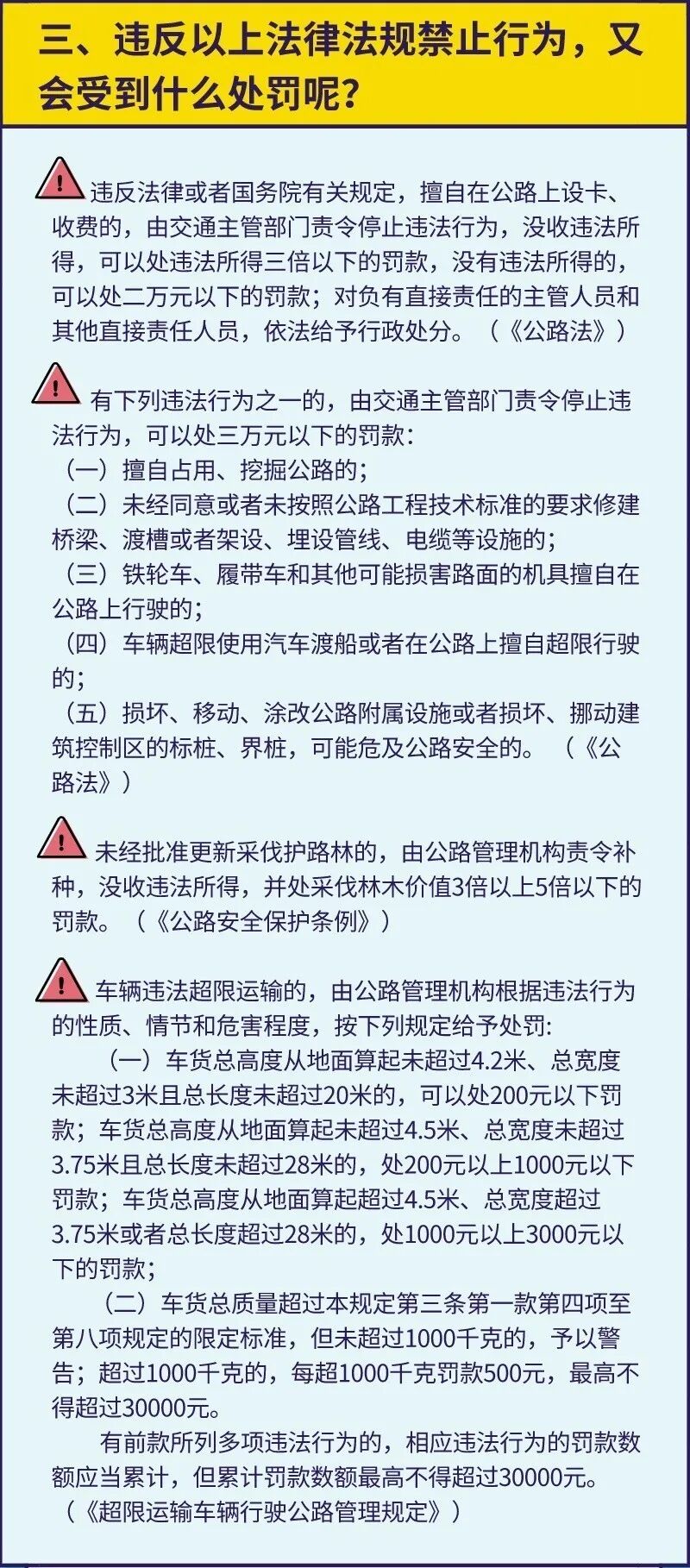 (一)禁止在公路上非法设卡、收费、罚款和拦截车辆;