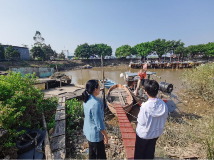 11月6日,市海洋综合执法支队党组书记、政委邓明芳带队到新会区崖门渔港和官冲码头检查督导。
