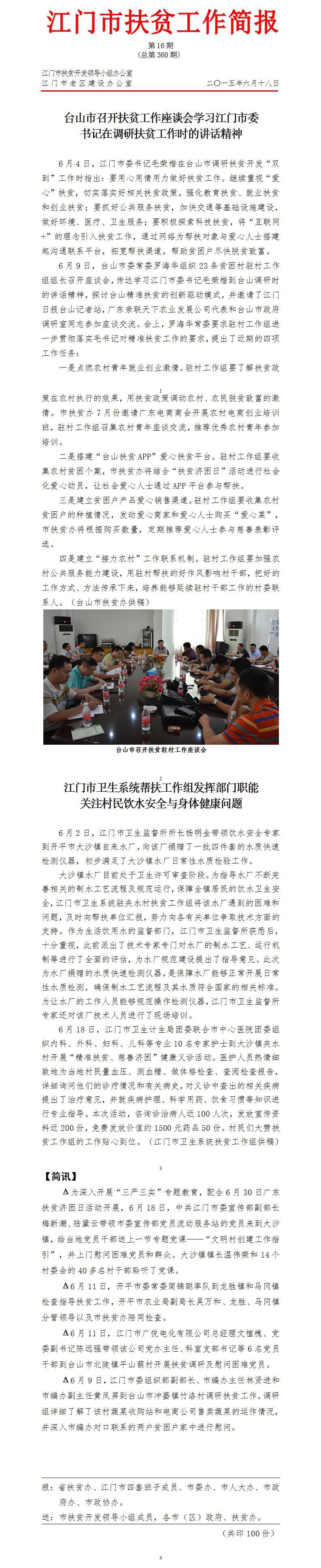 2015年江门市扶贫工作简报第16期(总第360期)