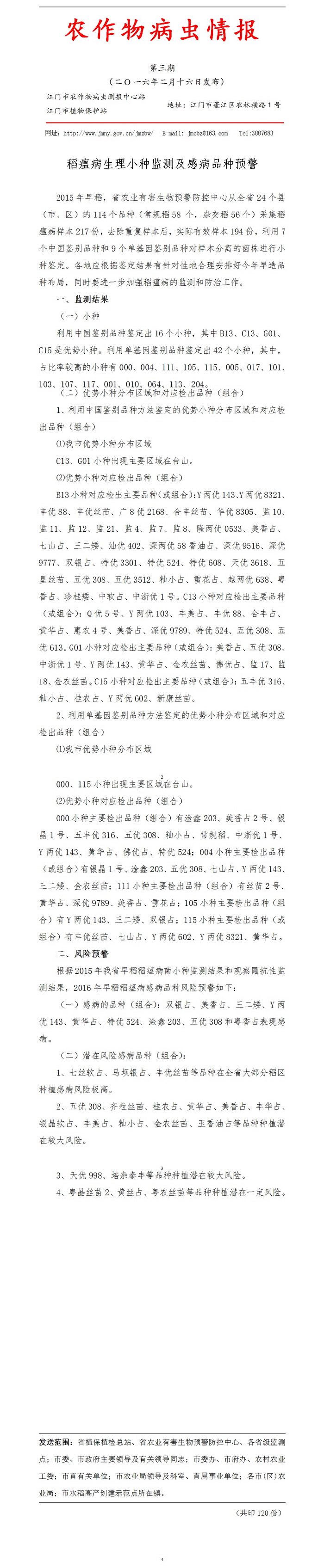2016年农作物病虫情报 第三期