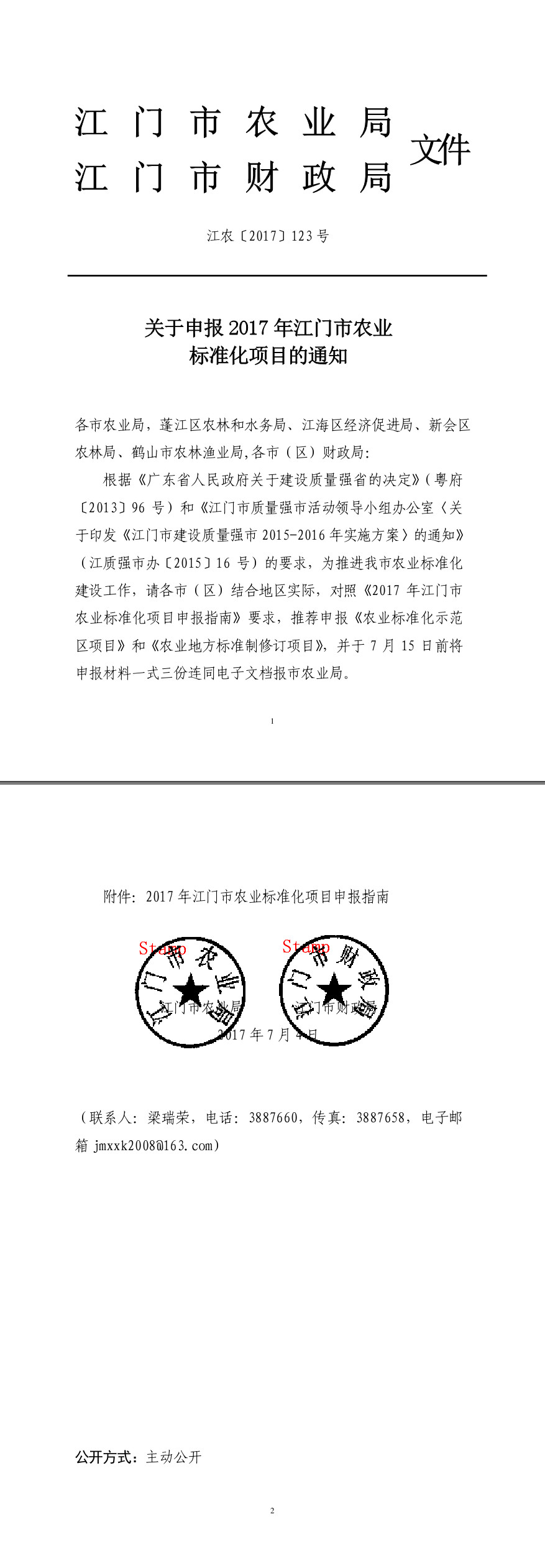 关于申报2017年江门市农业标准化项目的通知