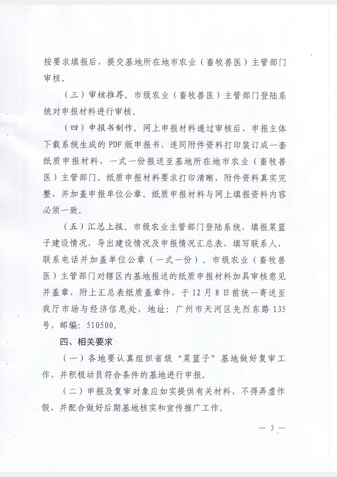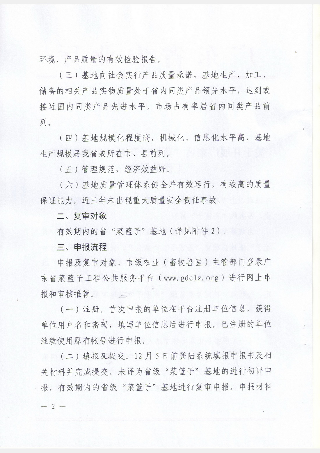 一、请各市区认真组织省级“菜篮子”基地做好复审工作,并积极动员符合条件的基地进行申报。