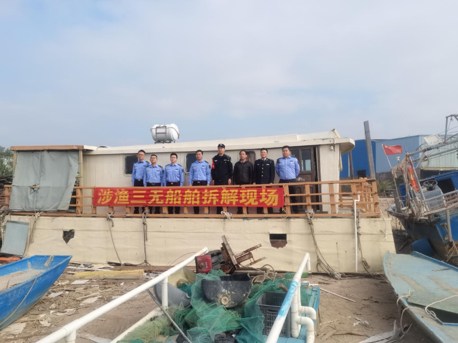 12月6日,市海洋综合执法支队在台山广海镇召开涉渔“三无”船舶集中拆解现场会,共拆解涉渔“三无”船舶19艘,省海洋综合执法总队渔业行动处吴军处长一行现场指导。