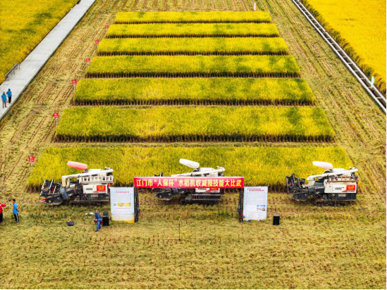 江门市农业农村局梁浩彬指出,与中国人民财产保险股份有限公司江门市分公司共同举办江门市“人保杯”水稻机收减损技能大比武活动,是金融保险业支持我市农机化工作高质量发展的一项具体举措,也是拓宽水稻减损减灾的又一条新赛道,为保障我市水稻减损增效、粮食安全起到积极作用。同时,梁浩彬强调,农业机械是现代化农业生产中不可或缺的工具,但也是农业安全生产的隐患,要充分认识到安全生产的重要性,做好农业机械的事前检查、事中防护以及事后保养,保障生命财产安全。