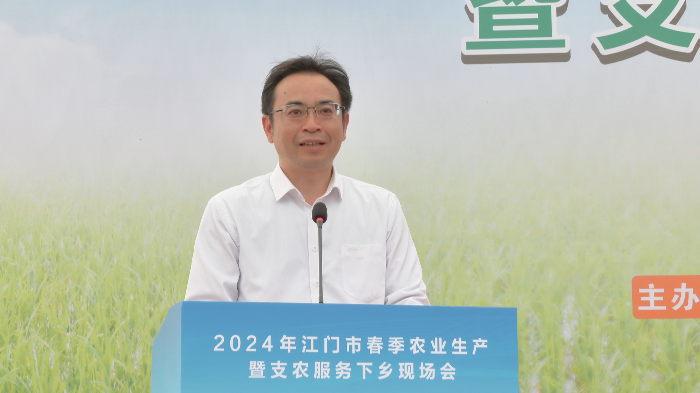 2024年江门市春季农业生产暨支农服务下乡现场会3月5日在台山中国农业公园、广东第一田举行。广东省农业农村厅二级巡视员黄孟欣,广东省农业科学院党委副书记、纪委书记吴亚玲,江门市委常委、政法委书记,市委农村工作领导小组(实施乡村振兴战略领导小组)副组长,乡村振兴专班的总召集人林小龙同志出席现场会并致辞,江门市政府副秘书长莫劲锋主持会议。