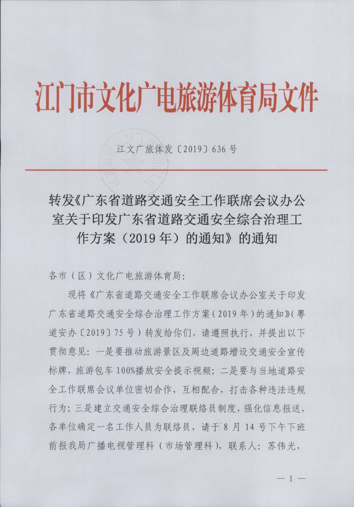 转发《广东省道路交通安全工作联席会议办公室关于印发广东省道路交通安全综合治理工作方案(2019年)的通知》的通知