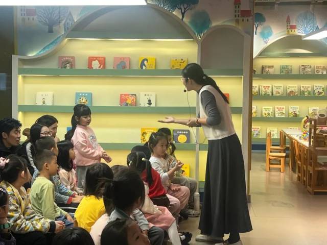 志愿者老师以生动有趣的语言和丰富的表情,将《第一次自己睡觉》这个故事缓缓道来。故事中的樱子勇敢地决定自己睡觉,她认真地为自己的玩偶们排好顺序,陪伴自己度过夜晚。小朋友们聚精会神地聆听着,仿佛自己也化身为樱子,一同经历着这场成长的挑战。在故事的引领下,孩子们仿佛也置身于那个充满挑战与惊喜的夜晚。他们与小主人公一同面对黑暗中的未知,一同感受心中那份由恐惧到坚定的转变。每一次翻页,都像是推开了一扇新世界的大门,让孩子们在故事的海洋中自由翱翔。
