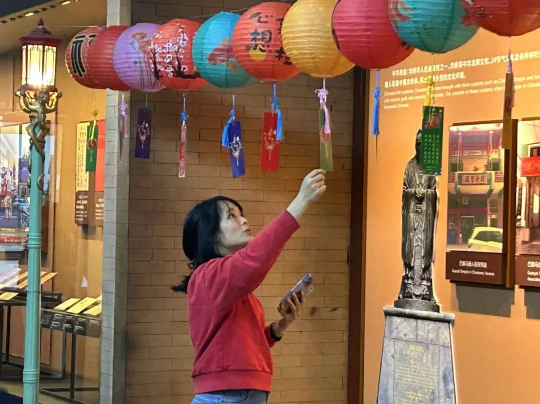 不论是在侨博馆唐人街还是在白沙祠,处处都热闹非凡,七彩灯笼高悬廊下,彩色灯谜随风飘逸。观众齐聚江门市博物馆参与“金蛇贺岁·趣味灯谜乐猜”活动,在智慧与趣味的碰撞中开启新年第一场文化盛宴,共赏五邑侨乡历史与新时代文化脉搏在花灯下交相辉映的文化盛景。在江博,观众不仅赢得了奖品,更收获了满满年味。