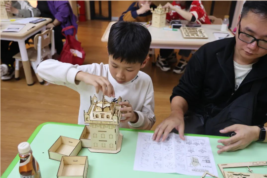 这次研学课堂带着观众深入了解世界遗产——开平碉楼与村落,认识到开平碉楼不仅具有居住、防卫、防洪等功能,更结合了中西方的建筑风格;而村落的布局更是将传统风水与实用功能完美融合,构成人与自然和谐共生的有机整体。来到动手环节还可以拼装碉楼模型。有家长不禁感叹,“实在是太壮观了,一定要带孩子亲自去看看这一部“立体的华侨史书”。