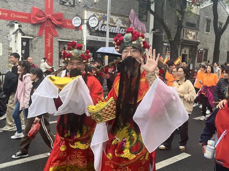 活动中,福禄寿、财神爷和近期火爆的哪吒现身,引得市民争相与合影、触摸,希望来年顺遂。