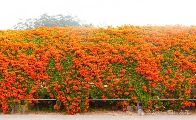 如同倾斜而下的橙红色瀑布与水乡的鱼塘古榕、青砖古建