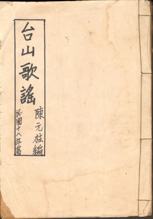1929年由陈元柱编写的《台山歌谣》(馆藏)
