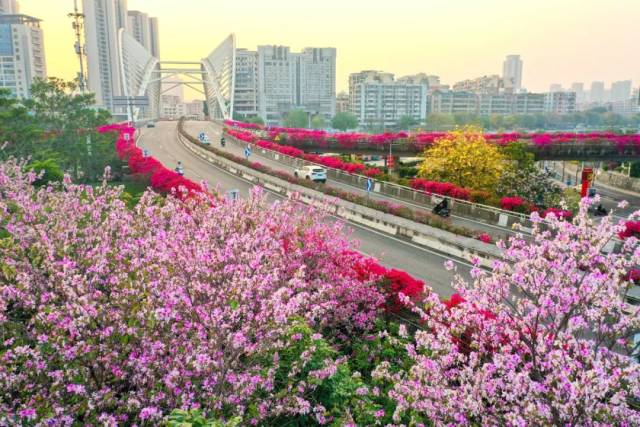 用姹紫嫣红的色彩点缀着这座繁华城市。
