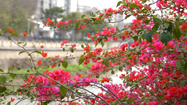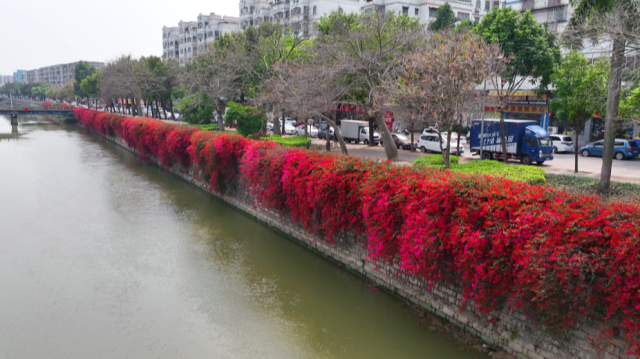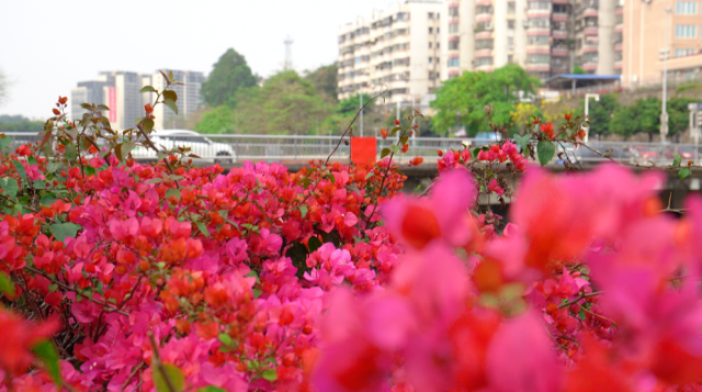 蓬江天沙河畔簕杜鹃即将迎来盛花期