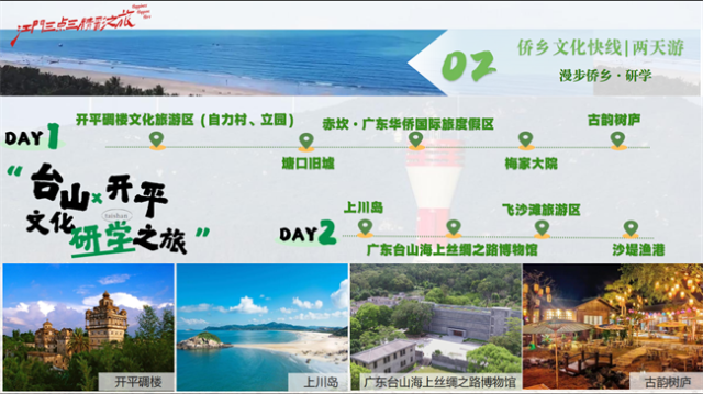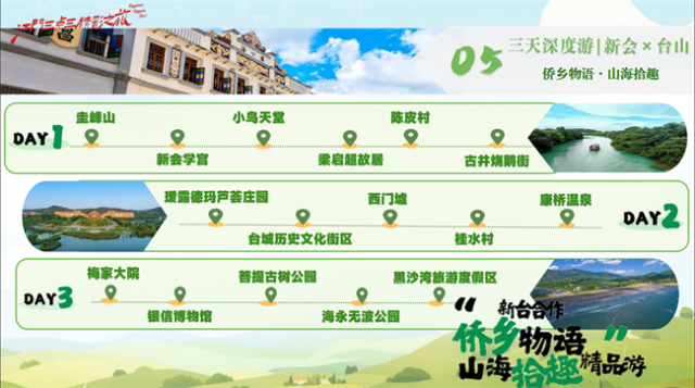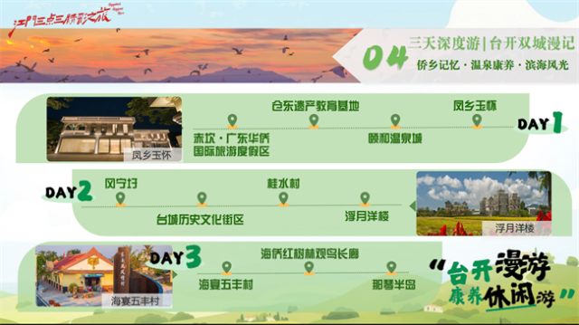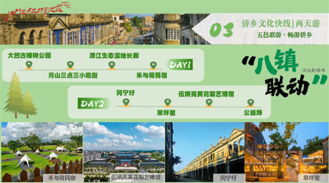 旅游线路涵盖侨乡文化、滨海风光、温泉康养、田园体验、湾区跨界等多元玩法。无论你是文化爱好者、自然探索者,还是美食达人,总有一条线路让你心动!