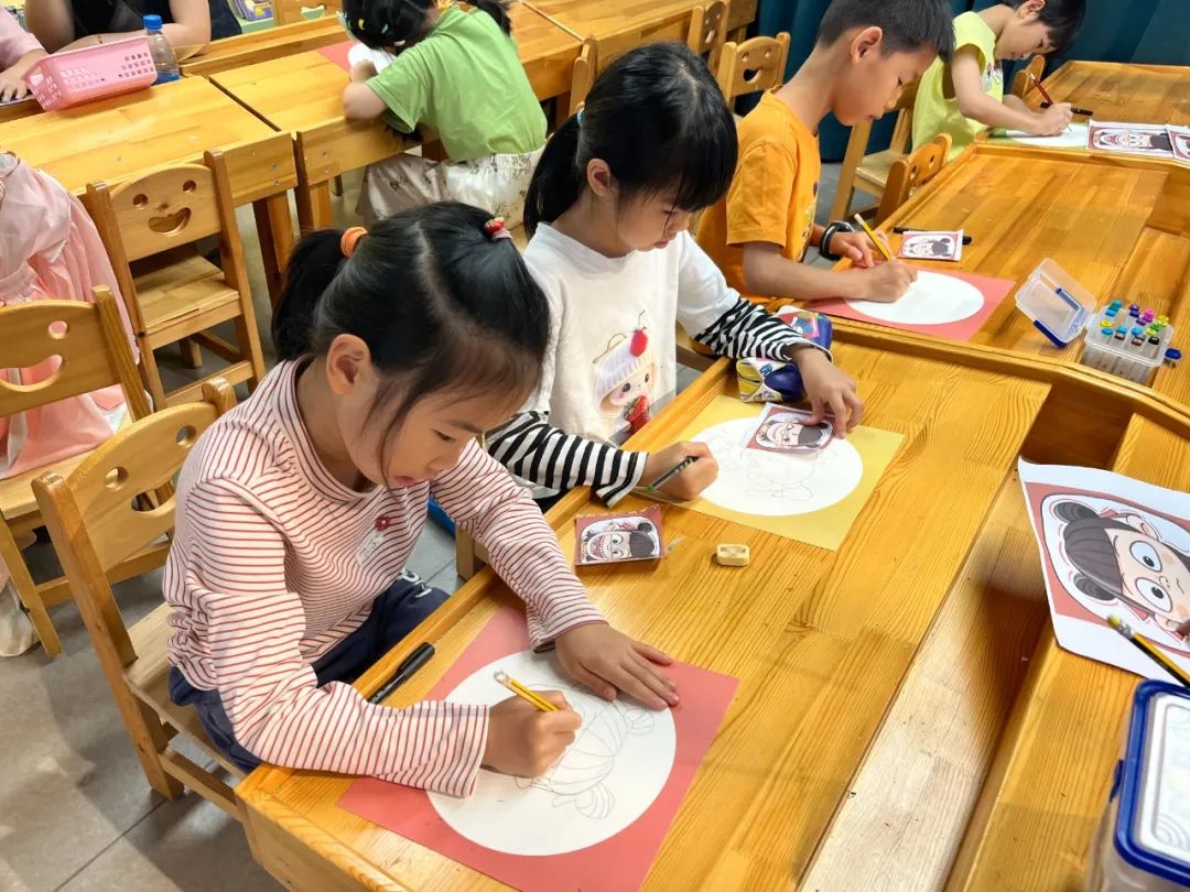 到了绘画环节,孩子们迫不及待地拿起画笔,在画纸上描绘自己心中的哪吒形象。有的孩子画出了哪吒脚踏风火轮、手持乾坤圈的英勇模样;有的孩子描绘了哪吒与龙王激烈战斗的场景;还有的孩子发挥想象,画出了哪吒的小伙伴们。一幅幅充满童趣和创意的哪吒画作逐渐呈现,每一幅画都饱含着孩子们对这个故事的独特理解和喜爱。