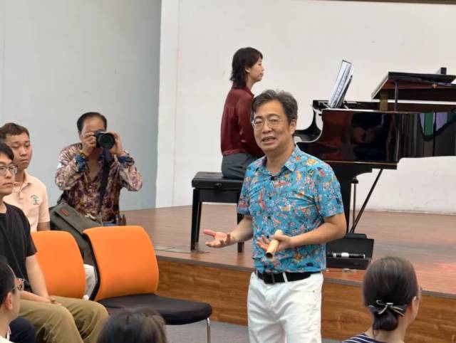 互动环节将活动推向高潮。针对学员们提出的“歌唱时怎样换气”“歌唱气息不足”“歌唱缺乏情感”等问题,李老师均耐心细致地予以答疑解惑。还有多位学员即兴登台演唱,接受李老师现场“把脉问诊”。活动尾声,学员精彩演绎了歌曲《世界赠予我的》,将所学技法融会贯通,悠扬歌声见证学习成果。