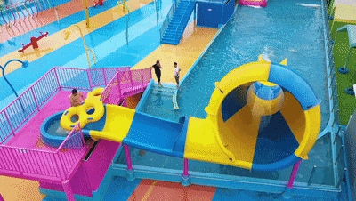 你可以在款式多样的水上滑梯上尽情冲刺,