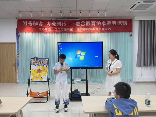 2025年5月24日上午,由江门市图书馆、江门市特殊教育资源中心、江门市特殊教育学校、江门市江海区特殊教育学校联合主办的“阅见融合,有爱同行”——融合教育绘本宣导活动,在江门市图书馆门楼四楼少儿多功能活动室顺利开展。活动吸引了江门市特殊教育资源中心教师代表、江海区特殊教育学校学生代表(6人)、陈白沙小学亲子代表(10组)及志愿者义工队共同参与,旨在通过绘本共读与互动体验,搭建理解与包容的桥梁,推动融合教育理念深入人心。