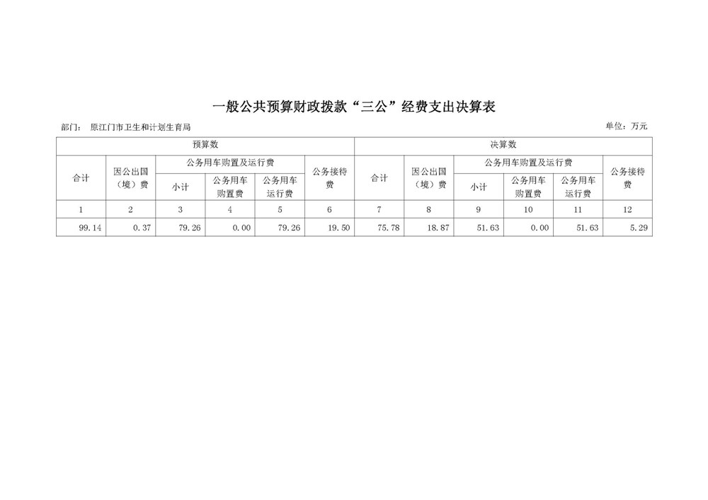 2018 年度原江门市卫生和计划育局财政拨款“三公”经费支出决算情况说明
