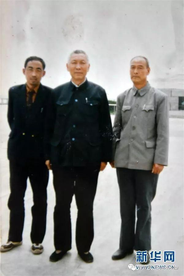 这是1992年郝郁民(中)、张玉生(左)和韩忠民的合影(翻拍资料照片)。新华社记者 曹阳 摄