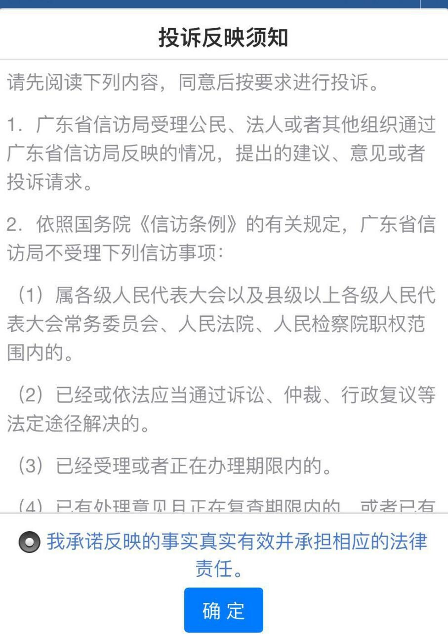②如您选择“投诉反映”,将进入“投诉反映须知”页面,请您认真阅读投诉反映须知内容,选择“我承诺反映的事实真实有效并承担相应的法律责任”,点击“确认”。