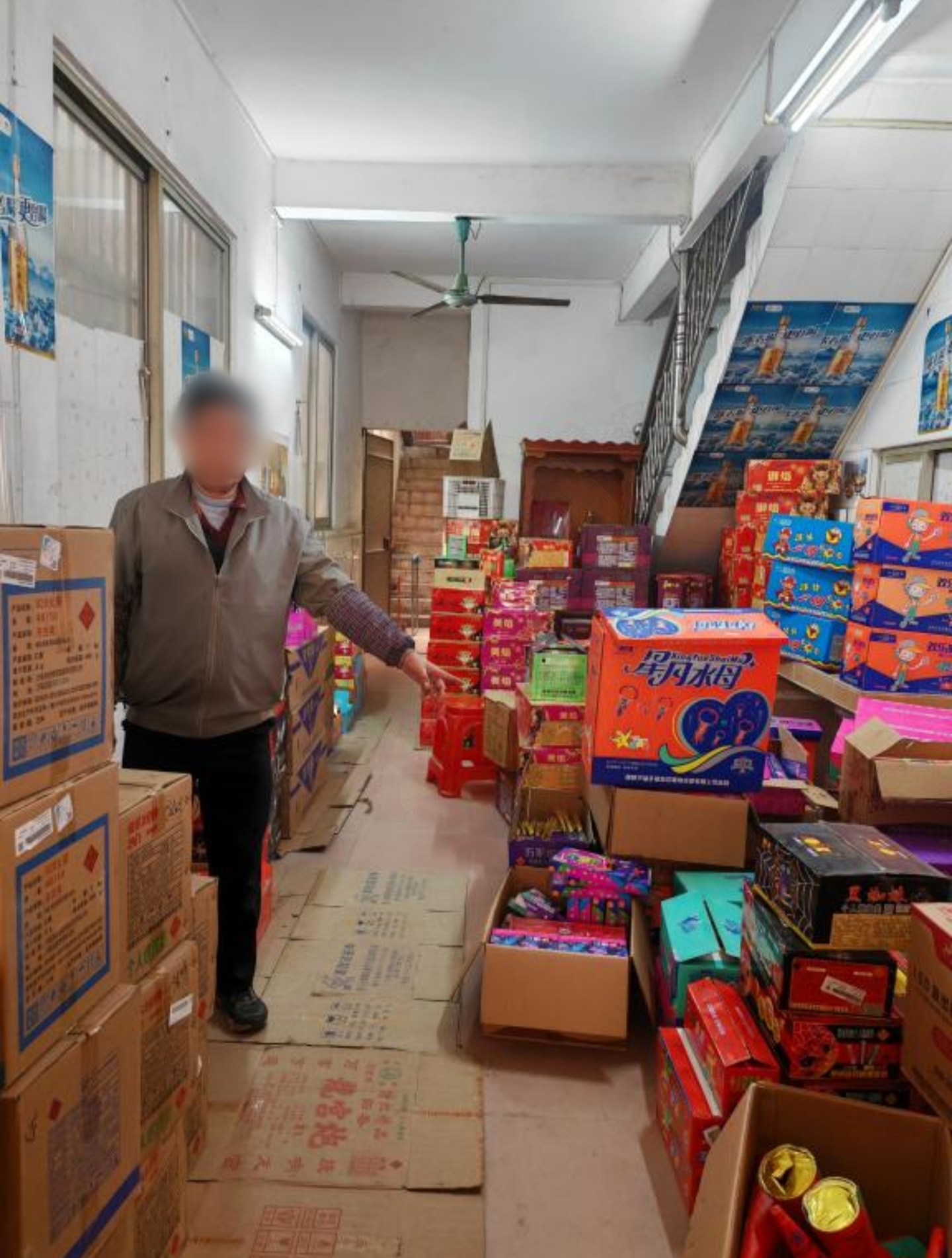 1月14日,市应急管理局党委委员、副局长高正华,党委委员、派驻纪检监察组组长朱江带队前往蓬江区的烟花爆竹零售点进行联合执法检查。检查期间,执法人员发现2家单位在未取得烟花零售许可的情况下,租赁店铺附近的仓库存放烟花并用于销售经营,存在非法经营烟花爆竹的违法行为。经现场清点,现场储存烟花300余箱,总重量约3300KG。执法人员对现场查获的烟花进行了扣押,并依法立案查处,将依法严肃追究相关责任人的法律责任。