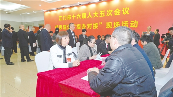 今年召开的市十六届人大五次会议上,不仅有人大代表走进“代表通道”集中接受媒体采访,为江门高质量发展建言献策,更有市人大常委会首次创新开展代表建议“提办对接”现场活动,组织市政府8个职能部门现场“摆摊”,通过现场“问”与“答”的互动,搭建起代表与职能部门高效沟通的桥梁。