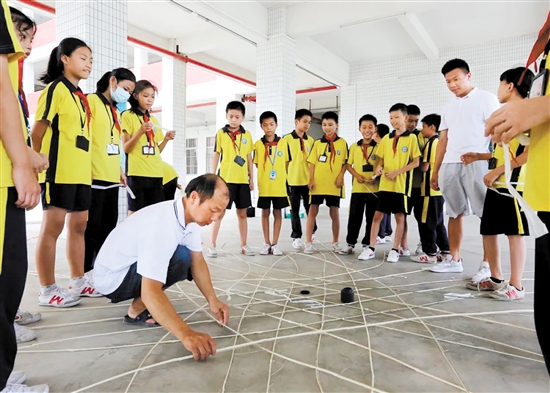 邝活发参与“非遗进校园”活动,为年轻一代讲解泮村灯会相关知识。