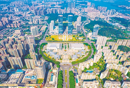 环市街道主动拥抱“双通道”历史机遇,打造大湾区西部商业集聚区。图为环五邑华侨广场商圈。刘淑君 摄