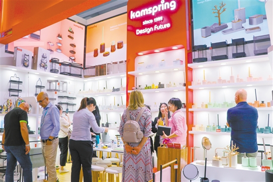 金泉家庭用品展位吸引众多外国客商围观。刘淑君 摄