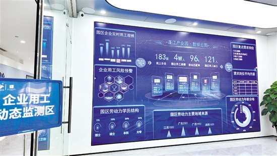 值得一提的是,在企业用工动态监测区,区人力资源社会保障局为蓬江产业园“量身订造”用工智慧雷达——智驿云图系统,通过“智慧大数据+驿站铁脚板”模式,为优化园区人力资源调配、推动产业协同发展提供强有力的决策参考。