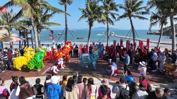 受晴好天气影响,今年新春假期游客出行意愿强烈,全市主要旅游景区客流热度持续高涨。除了推出各项门票优惠活动外,各景区景点还组织了烟花汇演、非遗展演、醒狮献瑞、财神游园等民俗活动,民俗非遗尽显特色,进一步带旺了文旅热度。