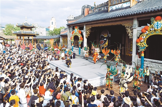 赤坎华侨古镇的英歌舞表演吸引了众多游客。景区供图