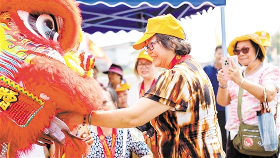 恳亲代表与醒狮互动,感受浓浓乡情。