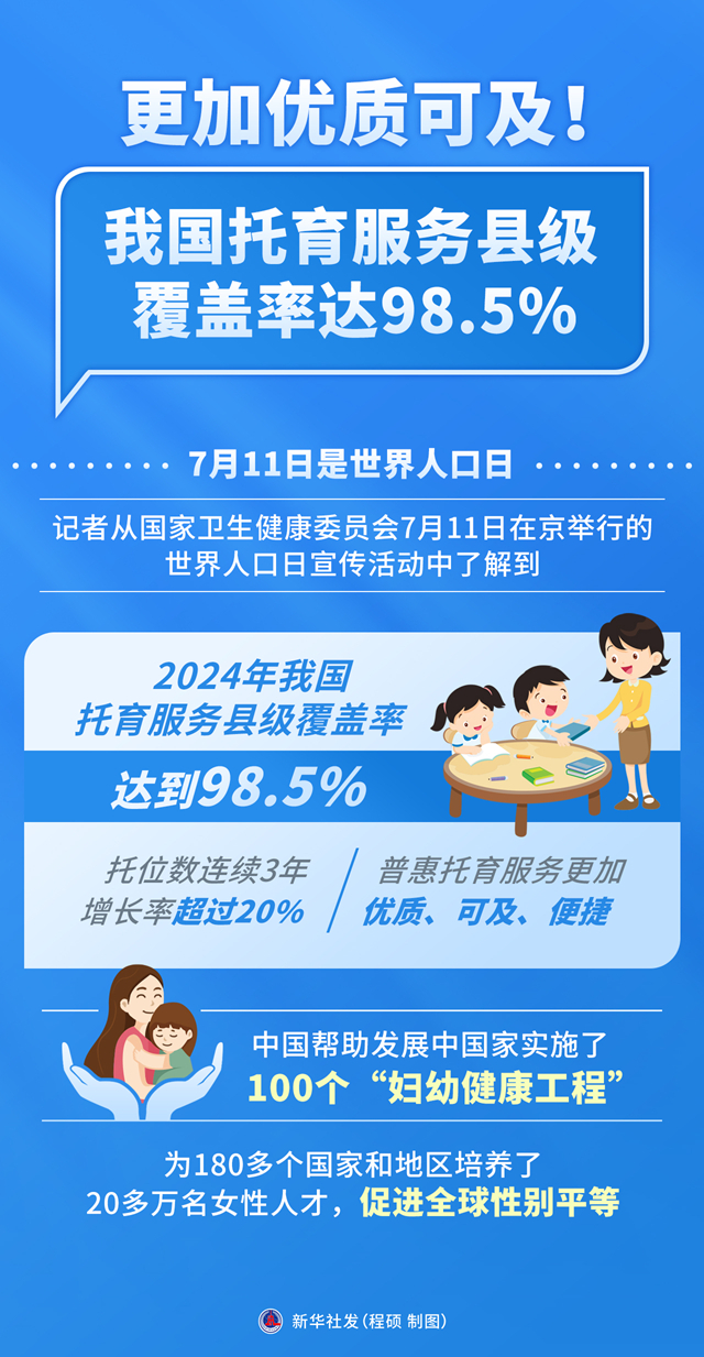 2024年我国托育服务县级覆盖率达到98.5%,托位数连续3年增长率超过20%,普惠托育服务更加优质、可及、便捷。