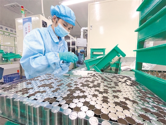 广大鹤山企业正以饱满的精神状态和奋斗姿态,助力鹤山高质量发展跑出加速度。图为朗达电池公司锂电池生产车间。