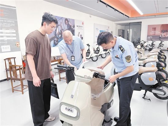 市场监管部门工作人员开展电动自行车质量安全检查。